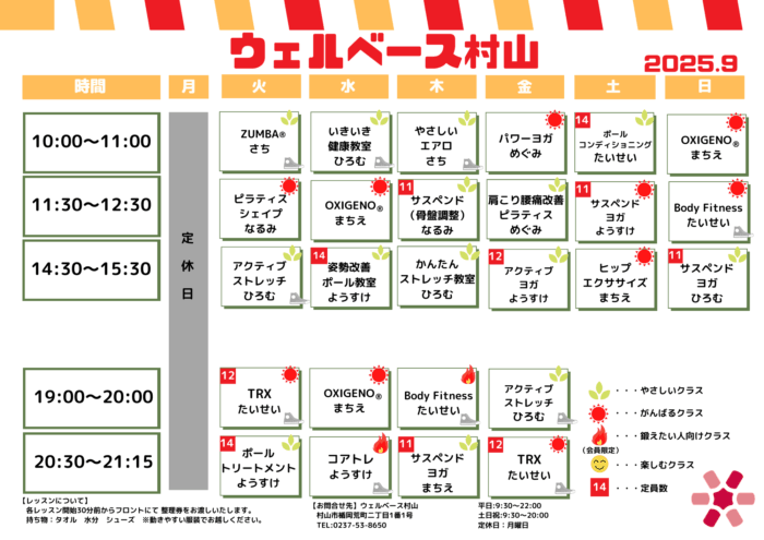- 運動初心者からシニアまで楽しめる多彩なクラス